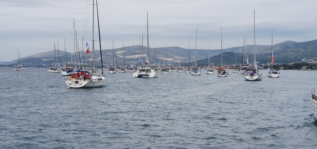 Not even the overcast sky could diminish seeing more than a hundred sailboats sail out at the same time. Music, laughter and cheers could be heard from the boats as the peace fleet “Mirno more” sails out of Marina Kaštel in Dalmatia, Croatia.
