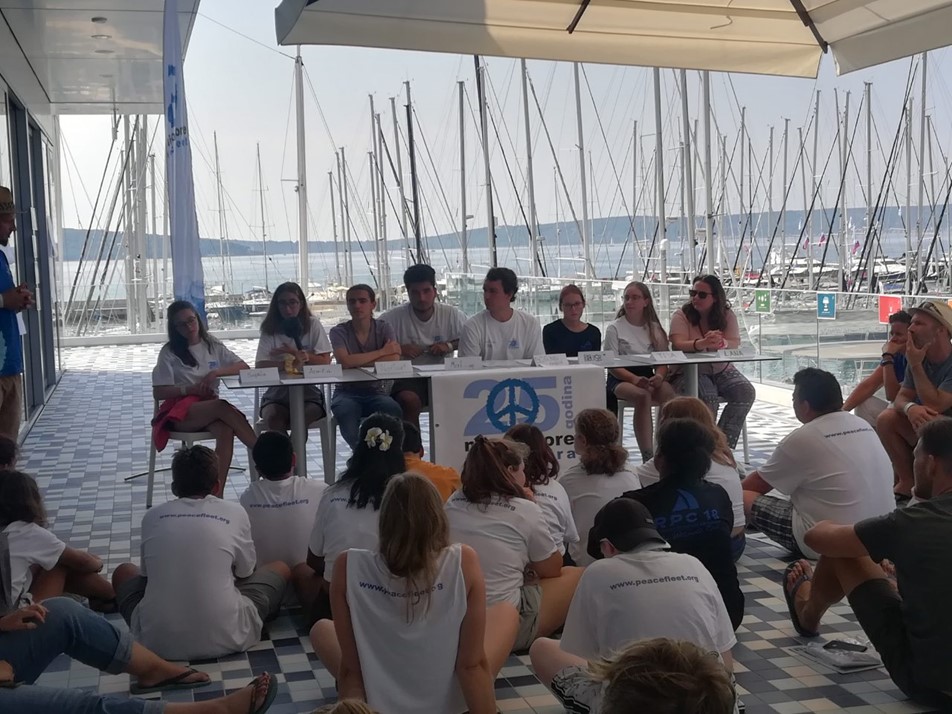 On the forth day, the fleet gathered in marina Kaštel Gomilica where they stayed docked for two days, are reserved for workshop in the marina, including their annual panel: Peace Talk. This year’s topic was climate change, with greater focus being put on the Amazon forest fires. The participants simulated a news conference, playing representatives of various interest groups (politicians, business owners, scientists and the general public).