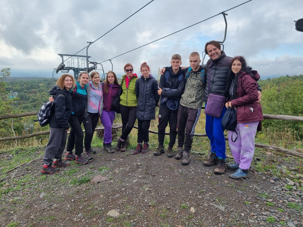 On the second day the participants traveled by bus and train to the mountain range of Mátra where they stayed in a youth camp for three days. During this period the students didn’t use their mobile phones because there was no signal so they spent their time socializing, enjoying nature and hiking. They showed their hiking skill by climbing Kekes, the highest peak in Hungary in five hours. Even though the students weren’t used to the challenging mountain conditions of Matra, their laughter could be heard everywhere. Apart from hiking, the students visited ,,Oxygen Adrenalin Park’’ and participated in various activities such as taking ski lifts, doing paintball and archery, walking the hanging bridge, sledge run.